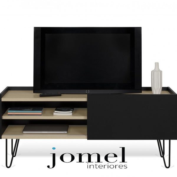 - Base de TV com arrumação garantida nos três compartimentos com porta e espaços abertos para colocação de aparelhos eletrónicos que exijam comando e passagem de cabos.