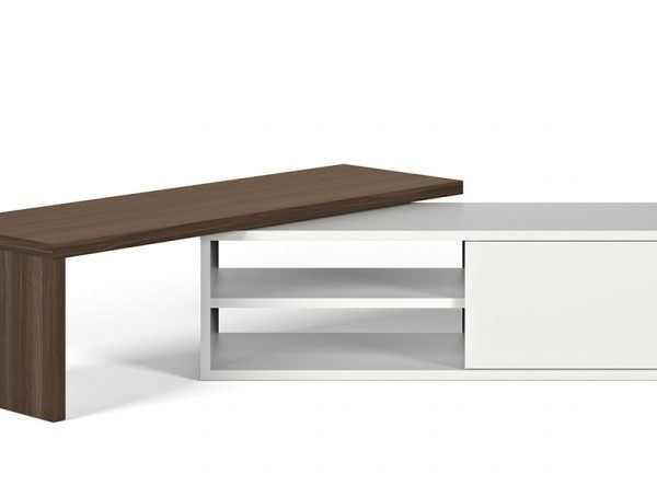 Base Tv fabricada em nogueira e preto, carvalho e branco
